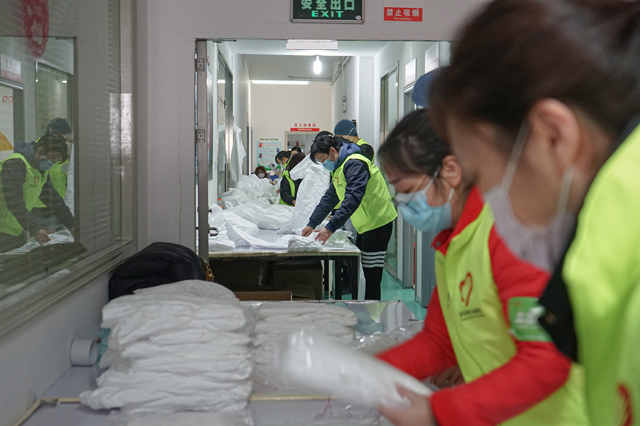 志愿者的工作為輔助性質(zhì),為配合一線技術(shù)工人的工作時(shí)長(zhǎng),志愿者服務(wù)時(shí)間分為白班和夜班。白班為早上8點(diǎn)至晚上9點(diǎn),夜班為晚上9點(diǎn)至凌晨5點(diǎn)。每個(gè)班次至少20人,并適時(shí)根據(jù)生產(chǎn)要求增加。長(zhǎng)時(shí)間、高強(qiáng)度的班次安排,對(duì)專業(yè)的技術(shù)工人來說壓力都不小,對(duì)志愿者的挑戰(zhàn)就更大。志愿者嚴(yán)帥說:“我們技術(shù)工作做不了,但疊衣服和裝箱,都能干!”長(zhǎng)時(shí)間站立、埋頭工作非常辛苦,但很多志愿者都舍不得輪換休息,從頭到尾不停地在工作。